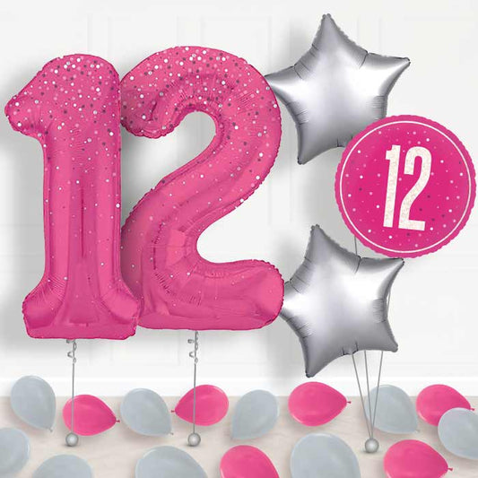 Hot Pink Dots 12th Birthday Balloon in a Box