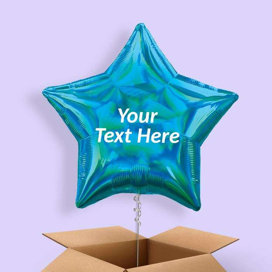 Personalised Foil Balloons in a Box - Teal Blue Star