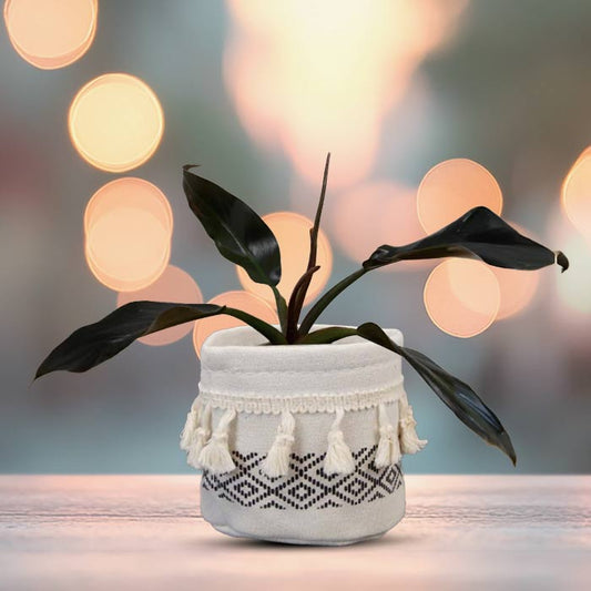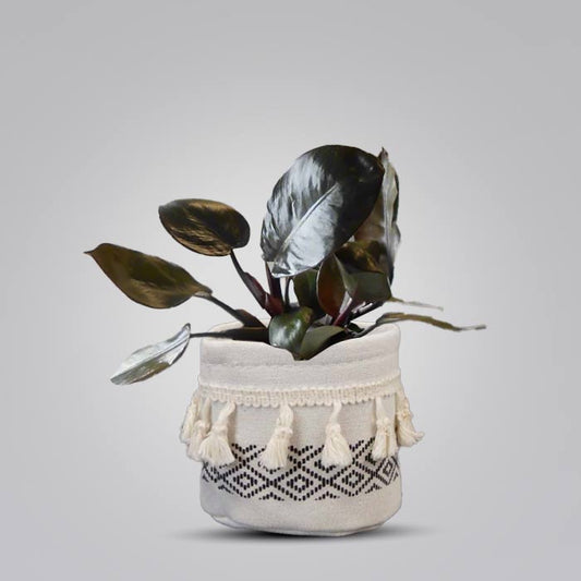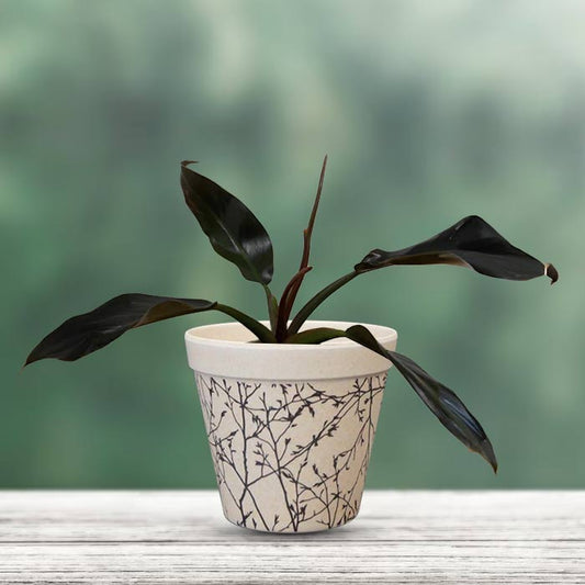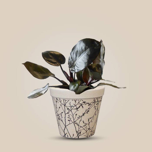 Philodendron Black Cardinal with Bamboo Plant Pot