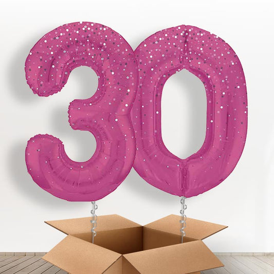 Pink Giant Numbers 30th Birthday Balloon in a Box Gift