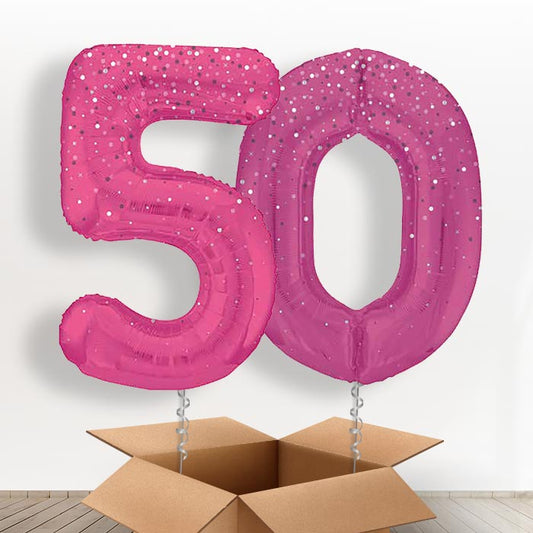 Pink Giant Numbers 50th Birthday Balloon in a Box Gift