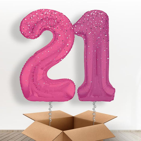 Pink Giant Numbers 21st Birthday Balloon in a Box Gift