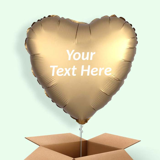 Satin Gold Heart Helium Balloons in a Box