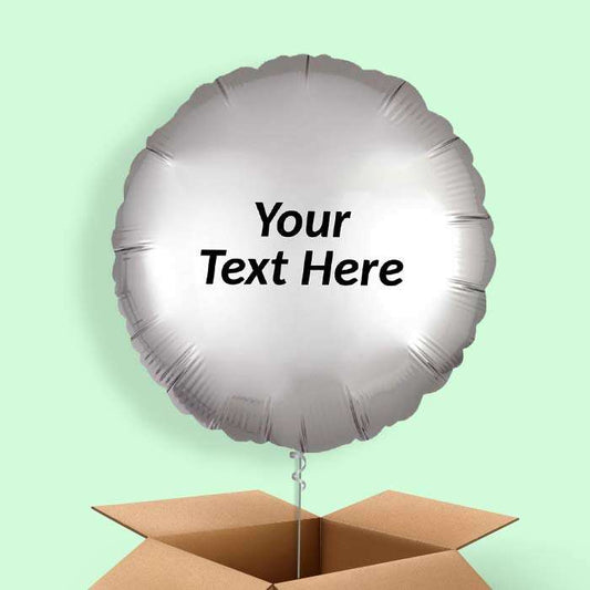 Platinum Grey Circle Helium Balloons in a Box