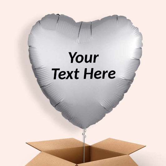 Platinum Grey Heart Helium Balloons in a Box