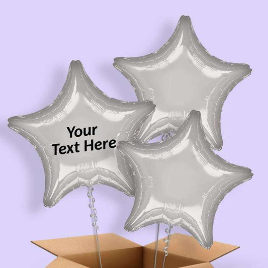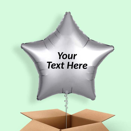 Platinum Grey Star Helium Balloons in a Box