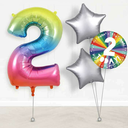 Rainbow Number 2 Birthday Inflated Standing Balloon Decoration