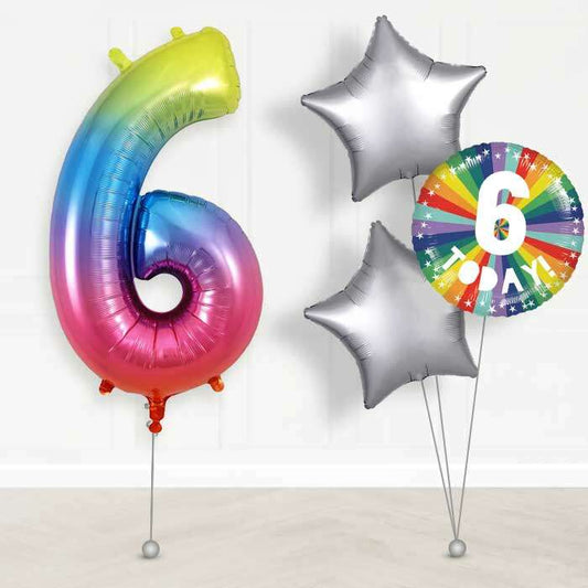 Rainbow Number 6 Birthday Inflated Standing Balloon Decoration