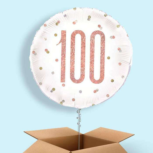 Rose Gold Holographic 100th Birthday Balloon in a Box