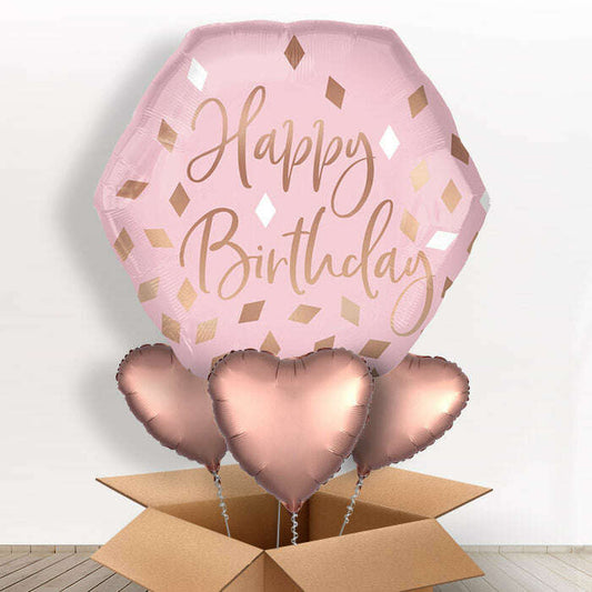 Rose Gold Happy Birthday Balloons in a Box