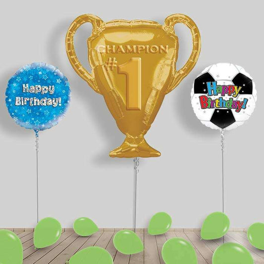 Discover the perfect Sport themed balloon displays for any sporting celebration! Perfect as a birthday morning display or a surprise balloon package delivery. Make decorating your sport themed party easy!