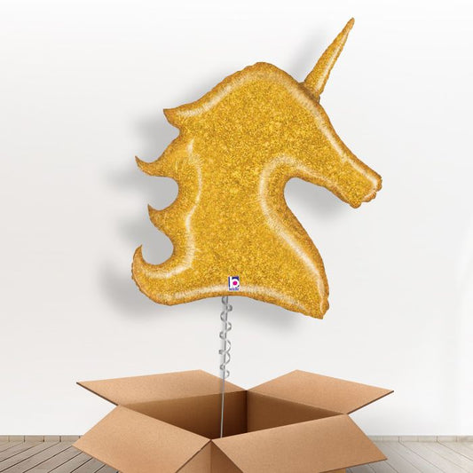 Gold Glitter Unicorn Head Balloon in a Box