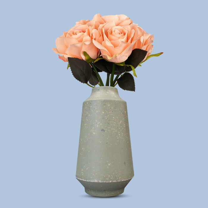 Artificial Champagne Roses Bouquet in a Skandi Green Vase