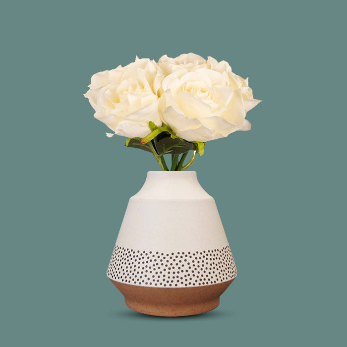 Artificial Cream Roses Bouquet in a Off-White Skandi Vase