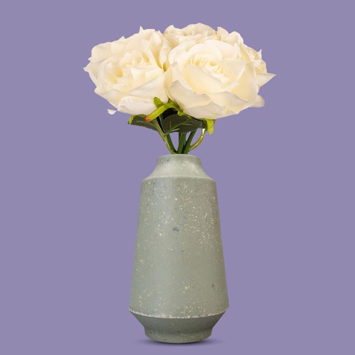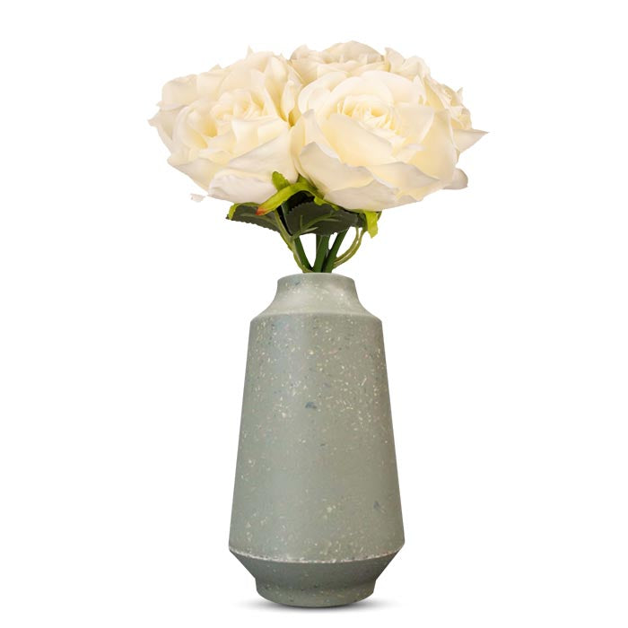Artificial Cream Roses Bouquet in a Skandi Green Vase