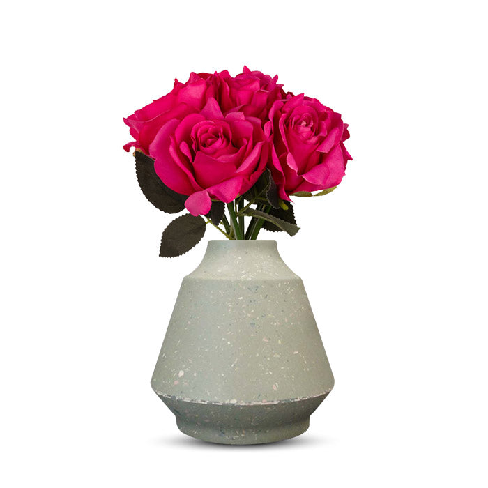 Artificial Dark Pink Roses Bouquet in a Green Skandi Vase