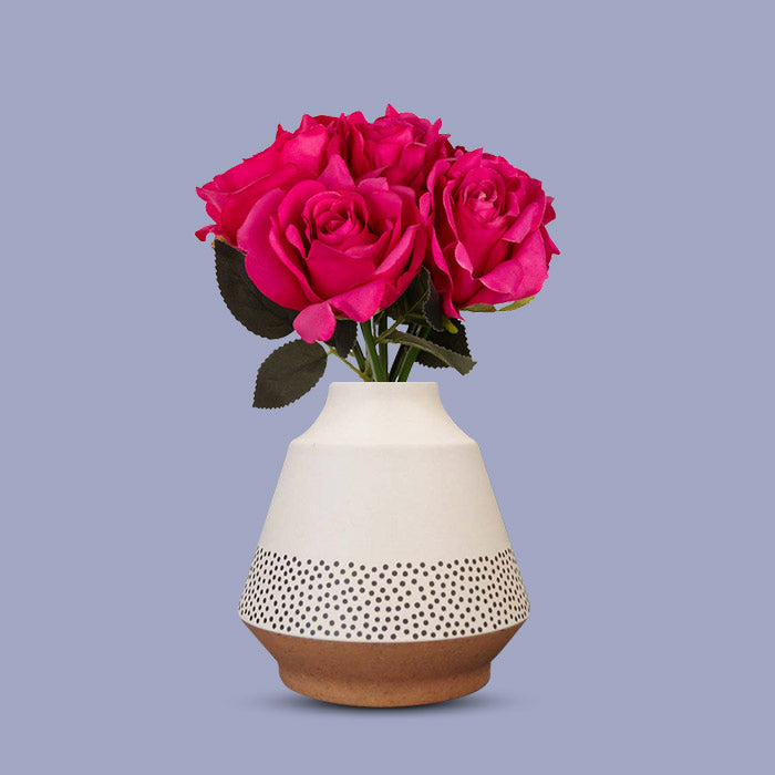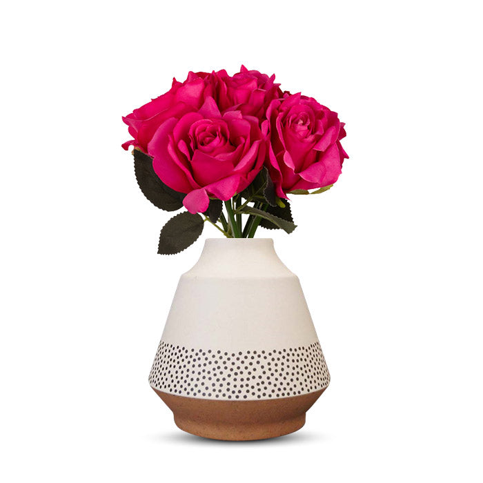 Artificial Dark Pink Roses Bouquet in a Off-White Skandi Vase