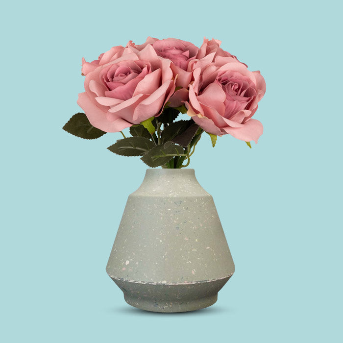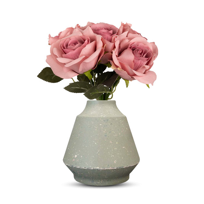 Artificial Dusty Pink Roses Bouquet in a Green Skandi Vase