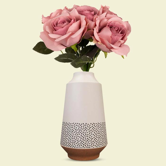 Artificial Dusty Pink Roses in a Off-White Nordic Vase
