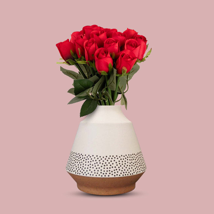 Artificial Red Roses Bouquet in a Off-White Skandi Vase