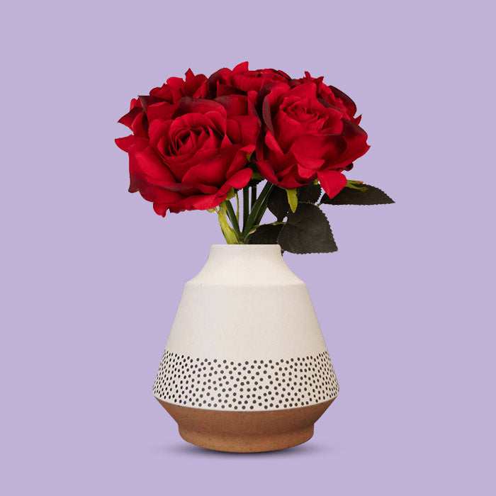 Artificial Red Roses Bunch in a Off-White Skandi Vase