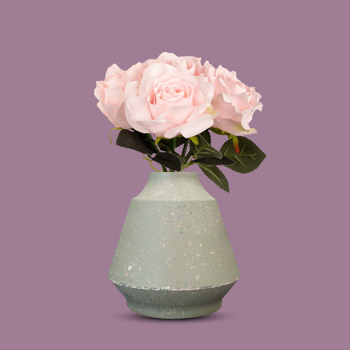 Artificial Soft Pink Roses Bouquet in a Green Skandi Vase