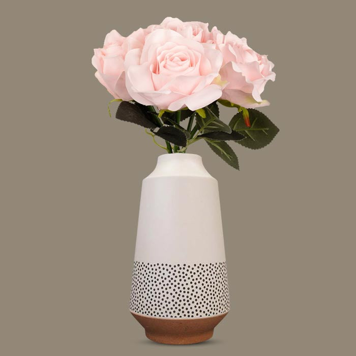 Artificial Soft Pink Roses in a Off-White Nordic Vase