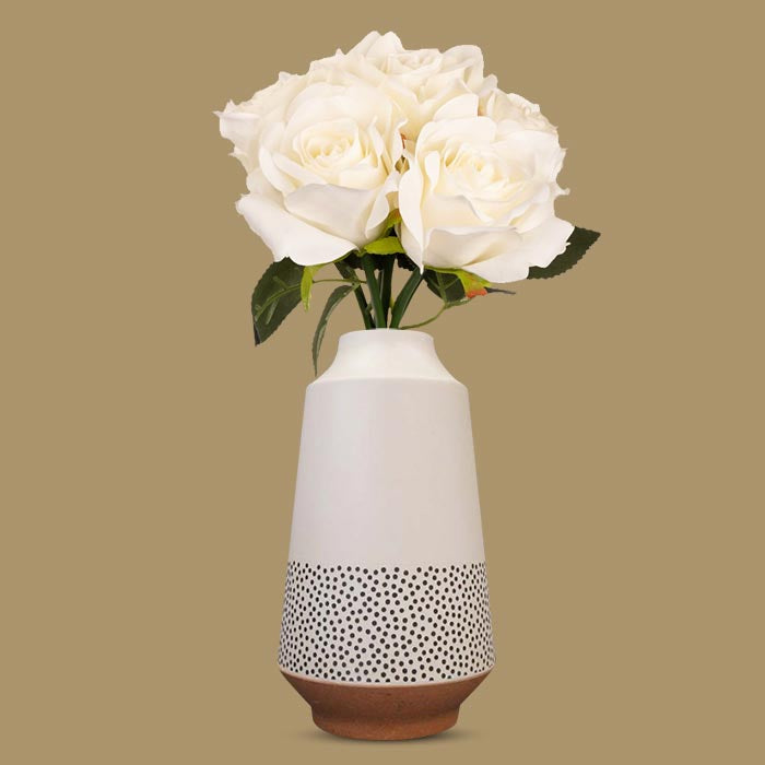 Artificial White Roses Bouquet in a Off-White Nordic Vase