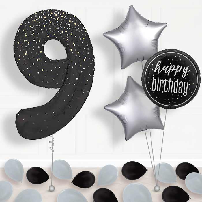 Our Black and Silver Dots Number 9 Balloon in a Box is a great surprise especially on a birthday!