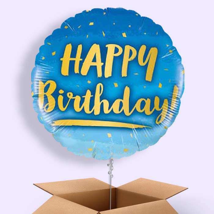 Happy Birthday Blue and Gold Balloon in a Box Gift.