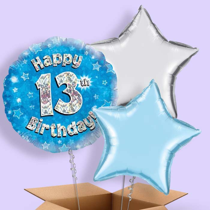 Happy 13th Birthday Blue Stars Foil Helium Balloon in a Box Gift.