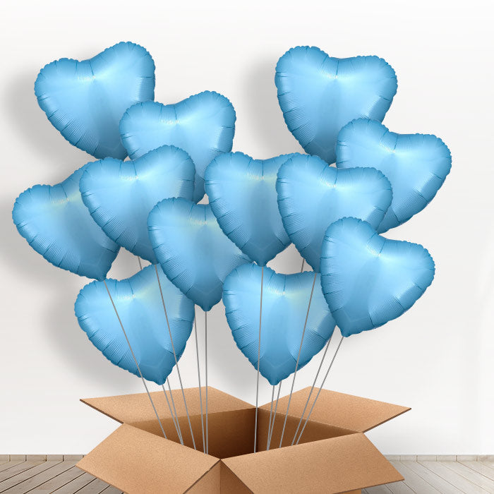 Dozen Baby Blue Heart Balloons Delivered Inflated