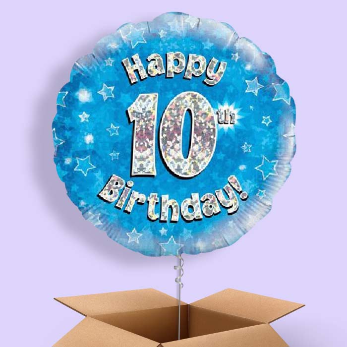 Happy 10th Birthday Blue Stars Foil Helium Balloon in a Box Gift.