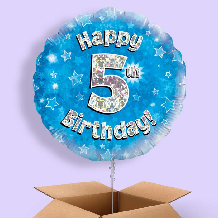 Happy 5th Birthday Blue Stars Foil Helium Balloon in a Box Gift.