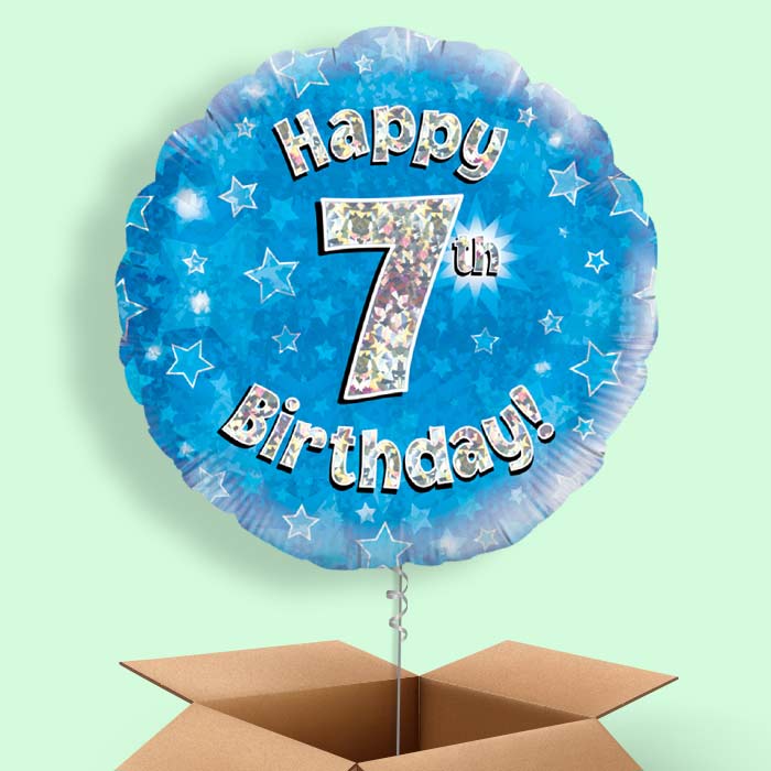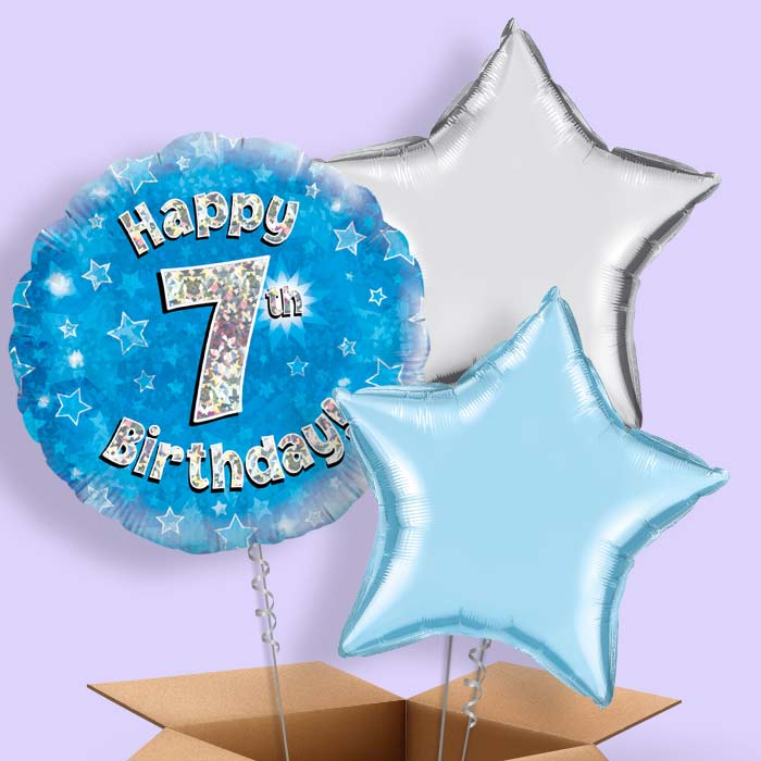 Happy 7th Birthday Blue Stars Foil Helium Balloon in a Box Gift.