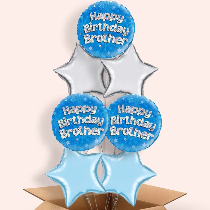 Happy Birthday Brother Blue Stars Balloon in a Box