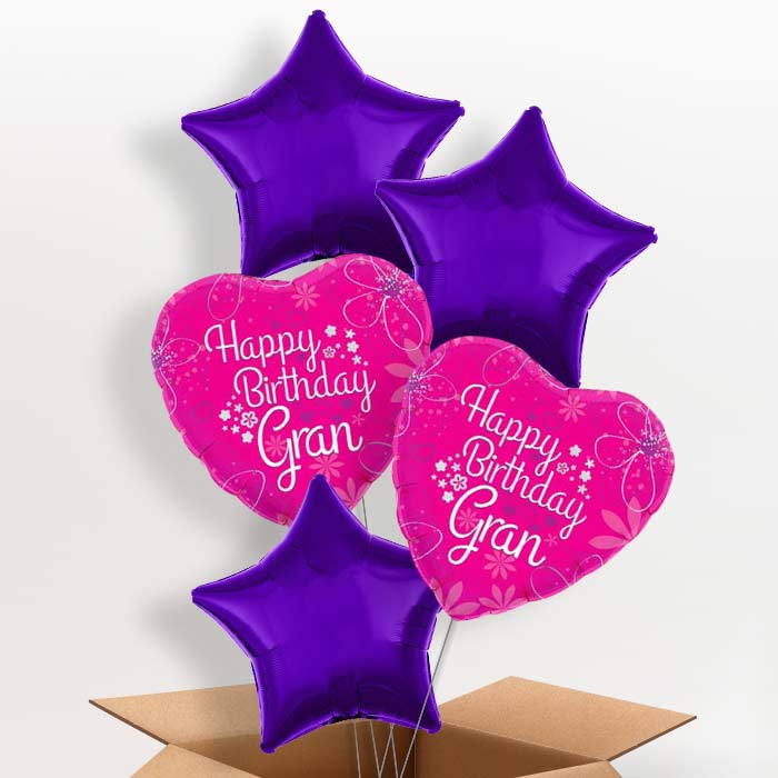 Happy Birthday Gran Pink Hearts Foil Helium Balloon in a Box Gift.