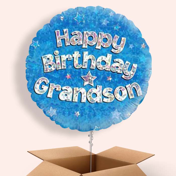 Happy Birthday Grandson Blue Stars Balloon in a Box