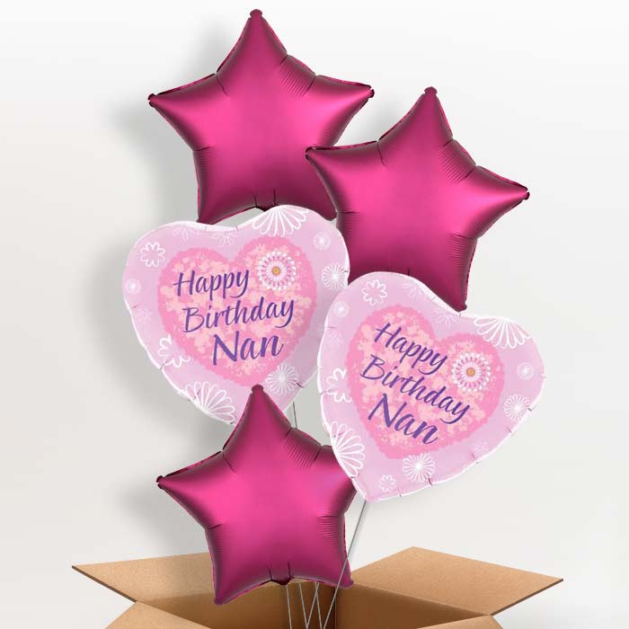 Happy Birthday Nan Pink Hearts Foil Helium Balloon in a Box Gift.