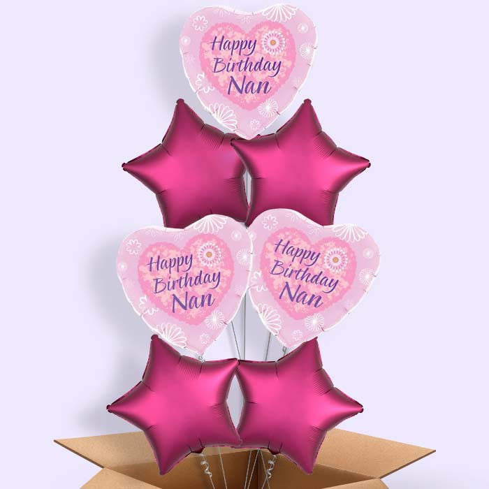 Happy Birthday Nan Pink Hearts Balloon in a Box