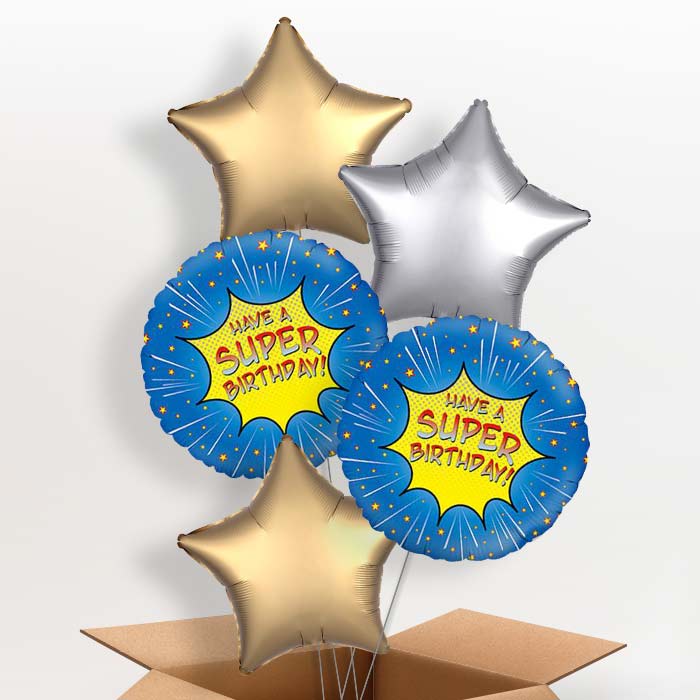 Super Birthday Blue Foil Helium Balloon in a Box Gift.