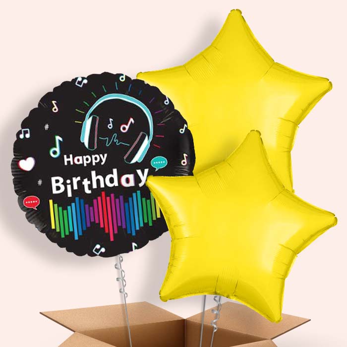 Music Birthday Balloons in a Box Inflated with Helium
