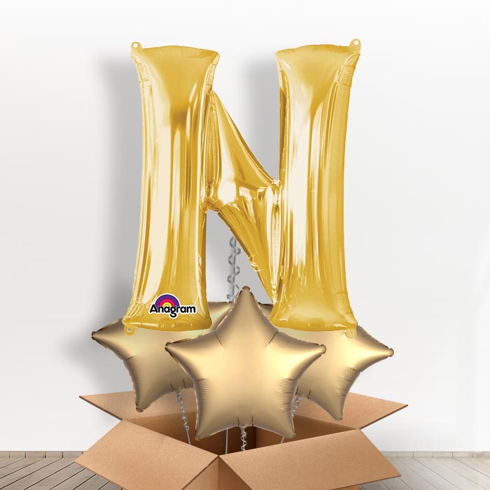 Personalised Letter N Balloon in a Box - Gold