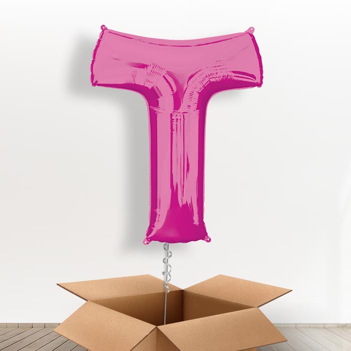 Personalisable Pink Giant Letter T Balloon in a Box Gift.