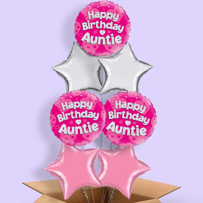 Happy Birthday Auntie Aunty Pink Hearts Foil Helium Balloon in a Box Gift.