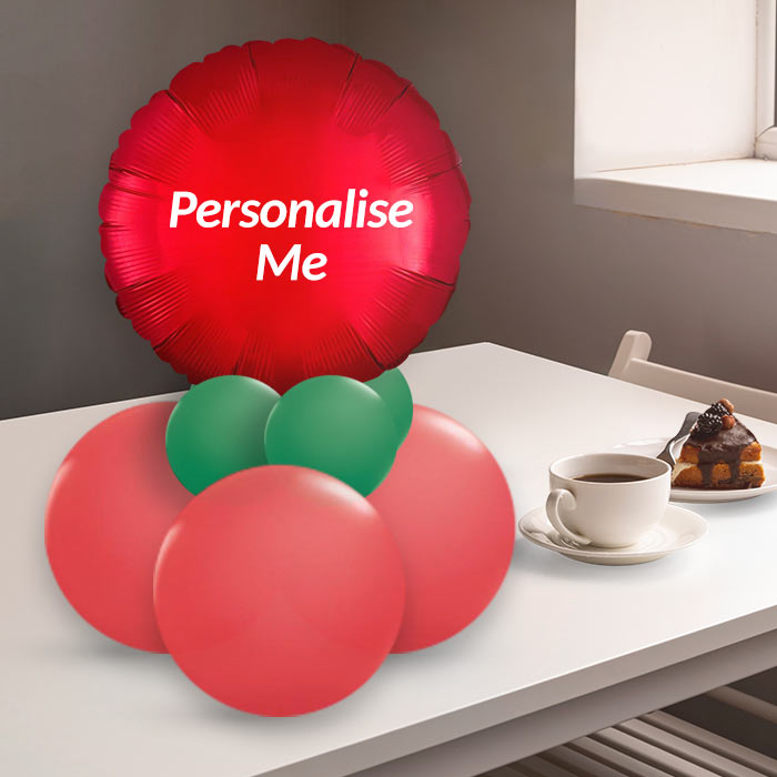 The decoration is carefully inflated and made by one of our in house balloon experts in our Leicestershire party store, and is assembled and ready to use on delivery. Design features Red and Green balloons.