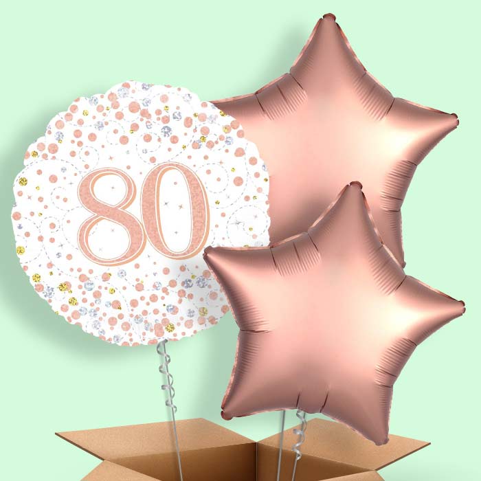 Rose Gold and White 80th Birthday Balloon in a Box