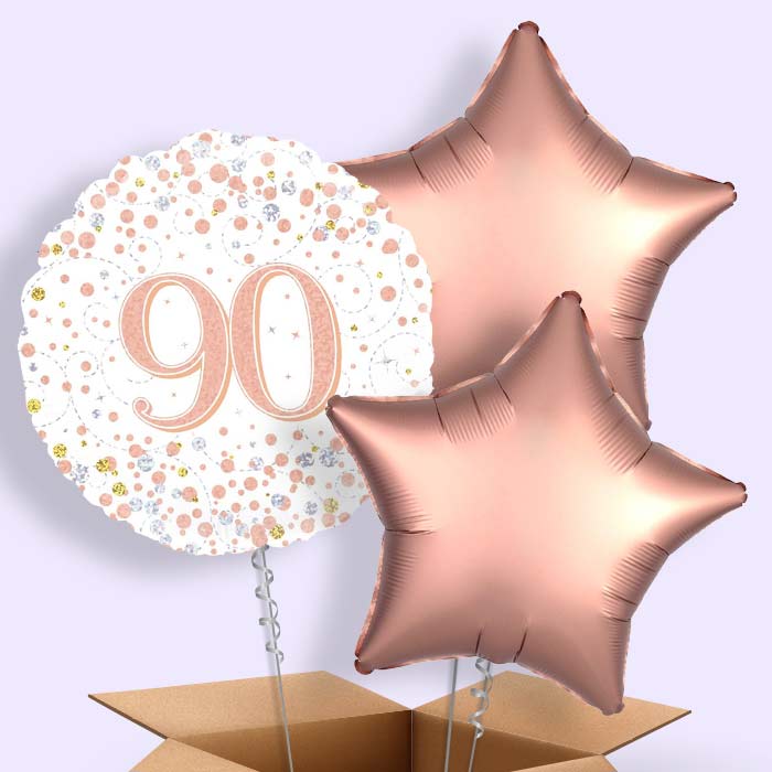 White and Holographic Rose Gold 90th Birthday Themed Foil Helium Balloon in a Box Gift.